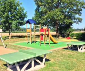 un mobil-home au camping Pyrénées Natura, cet établissement propose de nombreux services : restaurant, Bar ... ou plusieurs activités : baby-foot, ping-pong ...